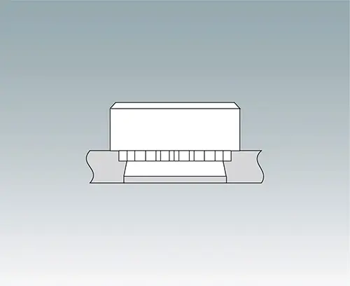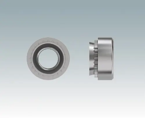 Einpressmutter, die in ein Loch in der Platte eingepresst wird.