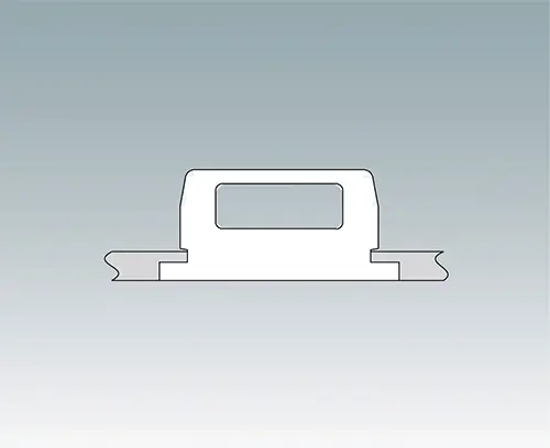 Kabelbinderhalterung, die in ein rechteckiges Loch in der Platte gesteckt wird.