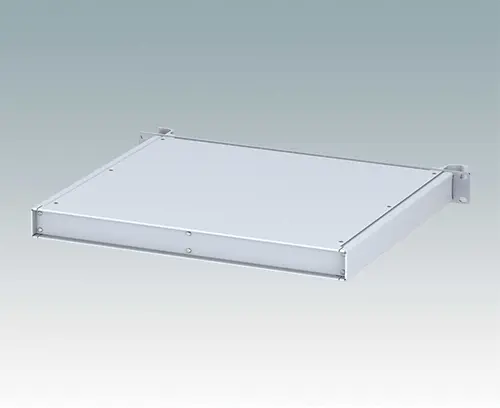 Universelles 19" Rack-Gehäuse mit eloxierten Alufrontblechen und zwei ergonomischen Frontblechgriffen. Der Alugehäusekörper besteht aus zwei Seitenblechen mit abnehmbaren Deck-, Boden- und Rückblechen. Das Bodenblech hat Montagelöcher für eine Leiterplatte oder die zugehörige Montageplatte. Für den elektrischen Anschluss sind alle Teile mit M4 Erdungsschrauben ausgestattet.