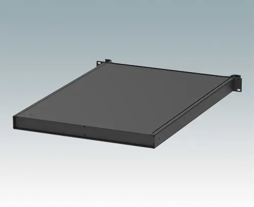 Universelles 19” Rack-Gehäuse mit Frontplatte in Aluminium schwarz lackiert und zwei ergonomischen Frontblechgriffen. Der Alugehäusekörper besteht aus zwei Seitenblechen mit abnehmbaren Deck-, Boden- und Rückblechen. Das Bodenblech hat Montagelöcher für eine Leiterplatte oder die zugehörige Montageplatte. Für den elektrischen Anschluss sind alle Teile mit M4 Erdungsschrauben ausgestattet.