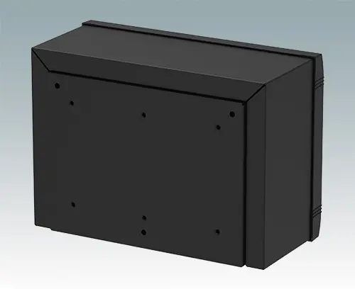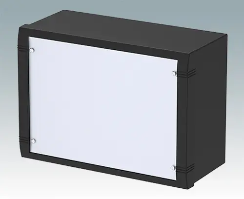 Moderne Aluminium-Gehäuse für Innenanwendungen. Elektronik während der Wandinstallation frei zugänglich. Elegantes Design mit Zink-Druckguss Frontrahmen, Haube und Rückplatte in L-Form. Front- und Montageplatten als Zubehör.