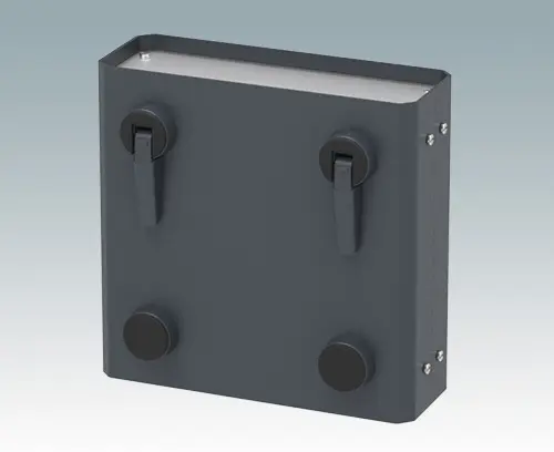 Formschöne Gehäusefüße mit ausklappbaren Kippfüßen für ergonomisch günstigen Aufstellwinkel der Geräte. In modernem Design passend für Kunststoff- und Metallgehäuse. Vierteilige Konstruktion, bestehend aus Grundkörper, TPE Anti-Rutsch-Pad zum Einstecken, Kippfuß für 120°-Stellung und selbstformender Schraube. Einsetzbar für Gehäuse mit einer max. Wandstärke von 3 mm (alternativ liefern wir auch längere Schrauben für größere Wandstärken, bitte anfragen). Je Fuß sind drei Aufnahmebohrungen im Gehäuse erforderlich, Details siehe Zeichnung.