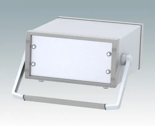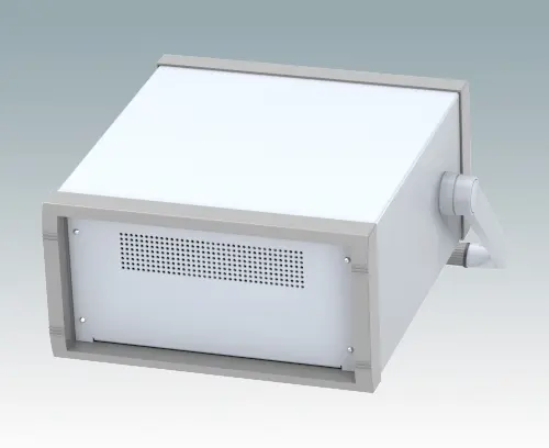 Elegante 10.5" Instrumentengehäuse geschaffen zur Aufnahme von Standard-3HE-Baugruppenträgern, Chassis und Frontplatten. Entsprechen DIN 41494 & IEC 297-1. Attraktives Design mit druckgegossenen Vorder-und Rückrahmen und geschweißtem Gehäuserumpf. Leichte, aber robuste Konstruktion aus aluminium.