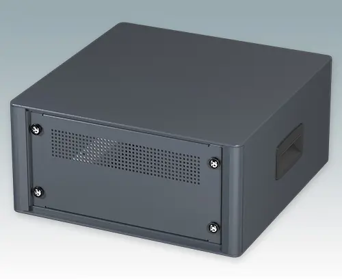 Modernes und äußerst attraktives 10.5-Zoll-Instrumentengehäuse geschaffen zur Aufnahme von Standard-3HE-Baugruppenträgern (42TE), Chassis und Frontplatten. Entsprechen DIN 41494 & IEC 297. Die eleganten Front- und Rückrahmen sind perfekt auf den Aluminiumgehäusekorpus abgestimmt. Design-Blenden (Front und Rückseite) verbergen die Montageschrauben für eine professionelle Aufmachung. Alle Gehäuseplatten sind mit M4-Gewindebolzen zum Erdanschluss ausgestattet. Das Gehäuse verfügt über eine Rückplatte, zwei ABS-Seitengriffe und vier ABS-Füße mit einsteckbare rutschfeste Gummifüße. Boden- und Rückplatte verfügen über Lüftungsschlitze. Interne Tragschienen für Baugruppenträger/Chassis.