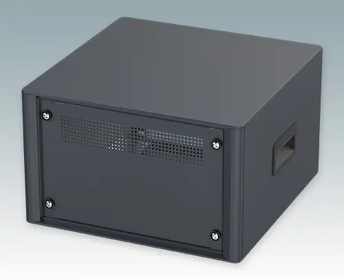 Modernes und äußerst attraktives 10.5-Zoll-Instrumentengehäuse geschaffen zur Aufnahme von Standard-4HE-Baugruppenträgern (42TE), Chassis und Frontplatten. Entsprechen DIN 41494 & IEC 297. Die eleganten Front- und Rückrahmen sind perfekt auf den Aluminiumgehäusekorpus abgestimmt. Design-Blenden (Front und Rückseite) verbergen die Montageschrauben für eine professionelle Aufmachung. Alle Gehäuseplatten sind mit M4-Gewindebolzen zum Erdanschluss ausgestattet. Das Gehäuse verfügt über eine Rückplatte, Griffbügel und vier ABS-Füße mit einsteckbare rutschfeste Gummifüße. Boden- und Rückplatte verfügen über Lüftungsschlitze. Interne Tragschienen für Baugruppenträger/Chassis.