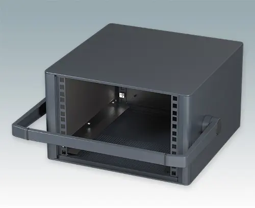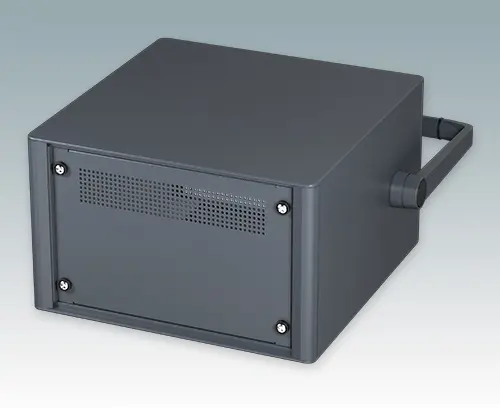 Modernes und äußerst attraktives 10.5-Zoll-Instrumentengehäuse geschaffen zur Aufnahme von Standard-4HE-Baugruppenträgern (42TE), Chassis und Frontplatten. Entsprechen DIN 41494 & IEC 297. Die eleganten Front- und Rückrahmen sind perfekt auf den Aluminiumgehäusekorpus abgestimmt. Design-Blenden (Front und Rückseite) verbergen die Montageschrauben für eine professionelle Aufmachung. Alle Gehäuseplatten sind mit M4-Gewindebolzen zum Erdanschluss ausgestattet. Das Gehäuse verfügt über eine Rückplatte, Griffbügel und vier ABS-Füße mit einsteckbare rutschfeste Gummifüße. Boden- und Rückplatte verfügen über Lüftungsschlitze. Interne Tragschienen für Baugruppenträger/Chassis.