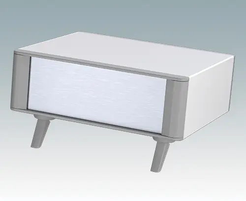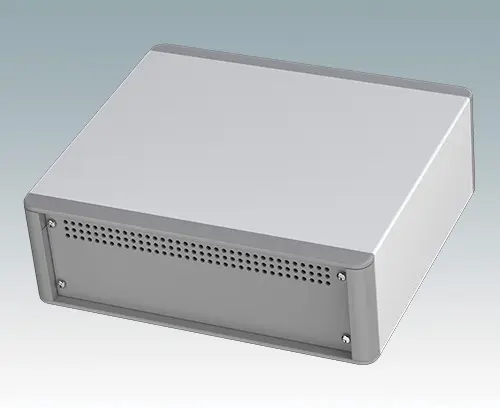 Das Gehäuse verfügt über eine Rückplatte und vier ABS-Kippfüße. Boden- und Rückplatte verfügen über Lüftungslöcher. Die Frontplatten sind gesondert zu bestellen.