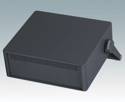 Das Gehäuse verfügt über eine Rückplatte und vier ABS-Kippfüße. Boden- und Rückplatte verfügen über Lüftungsschlitze. Die Frontplatten sind gesondert zu bestellen.
