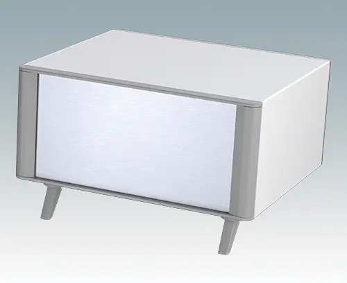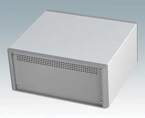 Das Gehäuse verfügt über eine Rückplatte und vier ABS-Kippfüße. Boden- und Rückplatte verfügen über Lüftungslöcher. Die Frontplatten sind gesondert zu bestellen.