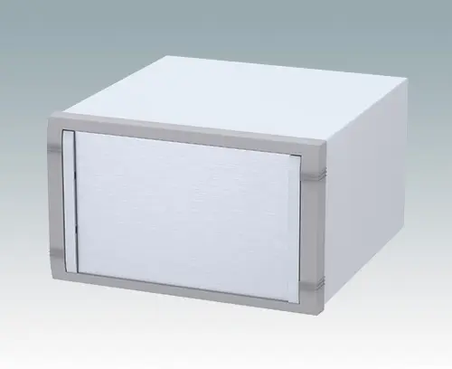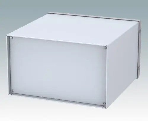 Modernes Instrumentengehäuse für Tischanwendungen oder mobilen Einsatz. Oberteil gekantet aus Aluminium mit Druckguss-Frontrahmen. Boden- und Rückplatten sind abnehmbar. Frontplatten-Set als Zubehör.